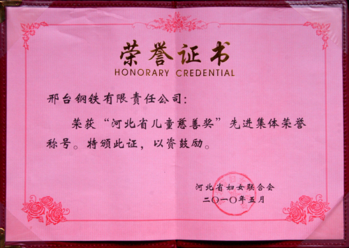 Xingtai Steel was entitled as Advanced Collective of Hebei Province Charity.