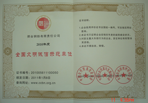 - 邢鋼被評(píng)選為“2011中國企業(yè)社會(huì)責(zé)任特別大獎(jiǎng)”