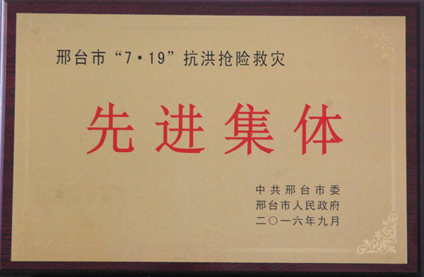 邢鋼被邢臺市授予“7?19” 抗洪搶險救災(zāi)先進(jìn)集體榮譽稱號