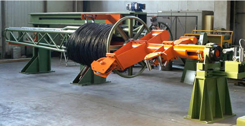 1、推進(jìn)裝置將盤(pán)條推進(jìn)至工作位置,經(jīng)放線(xiàn)機(jī)后進(jìn)入到同步裝置,同步裝置的滑輪可以累積大約2米的盤(pán)條,用于在萬(wàn)一發(fā)生纏繞時(shí)停止生產(chǎn)線(xiàn)。