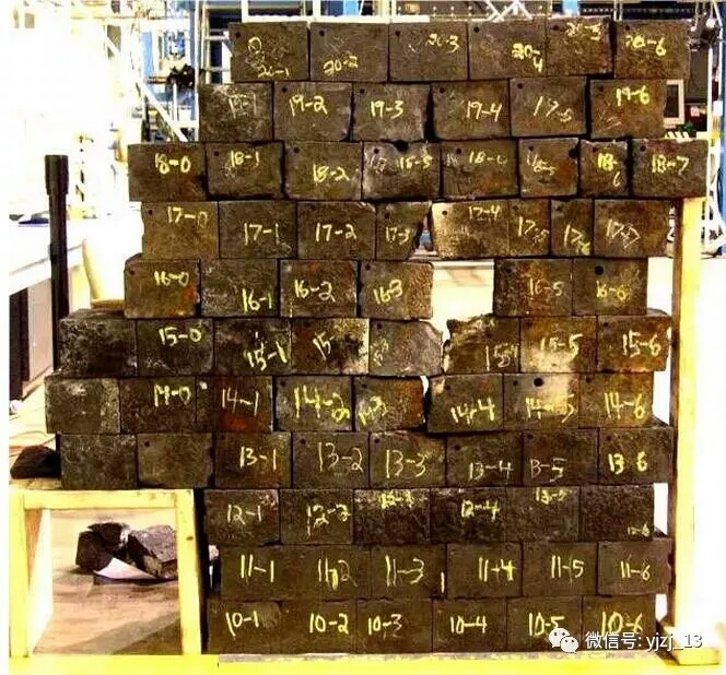 1.碳磚縫隙達70mm,環(huán)碳90mm環(huán)裂,后部900mm碎裂,碳磚在施工過程堆在火車站就嚴重變形,鉆鐵都說明碳磚質量過低(收縮與未焙燒)。