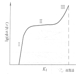 II區(qū):da/dt與K1無關(guān),通常說的裂紋擴展速率就是指該區(qū)速率,因為它主要由電化學(xué)過程控制,較強烈地依賴于溶液的pH值,粘度和溫度;