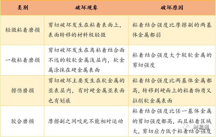 當(dāng)摩擦副相對滑動時, 由于粘著效應(yīng)所形成結(jié)點(diǎn)發(fā)生剪切斷裂,被剪切的材料或脫落成磨屑,或由一個表面遷移到另一個表面,此類磨損稱為粘著磨損。