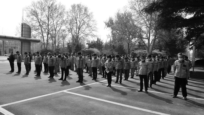 2020年4月4日上午10時(shí),公司在辦公樓外廣場(chǎng)舉行哀悼?jī)x式,下半旗,火車和汽車?guó)Q笛三分鐘,對(duì)抗擊新冠肺炎疫情斗爭(zhēng)犧牲的烈士和逝世同胞表示深切哀悼!
