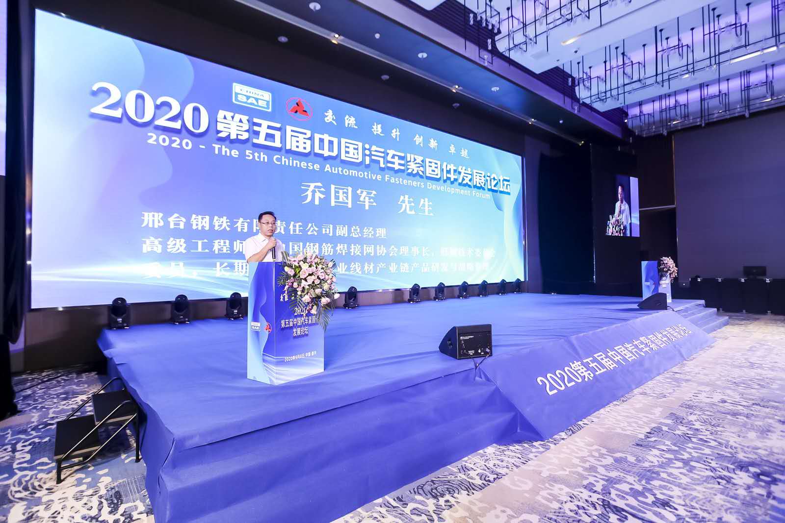 2020年9月8日,由中國汽車工程學會、中國汽車工程學會汽車防腐蝕老化分會主辦的2020第五屆中國汽車緊固件發(fā)展論壇在嘉興召開。汽車主機廠、零部件整機廠、緊固件企業(yè)、檢測機構、科研院所、大專院校等180多家緊固件相關單位的科研人員、技術人員及管理人員400多人出席大會。本次大會由邢臺鋼鐵有限責任公司承辦,公司副總經(jīng)理喬國軍、總經(jīng)理助理兼銷售公司總經(jīng)理劉振民等參加了大會。