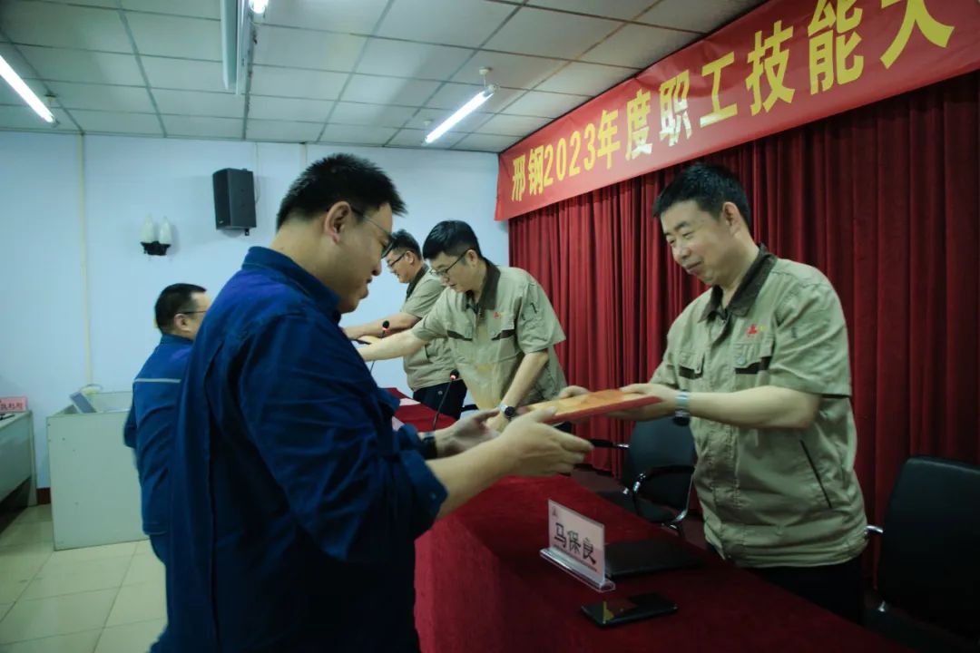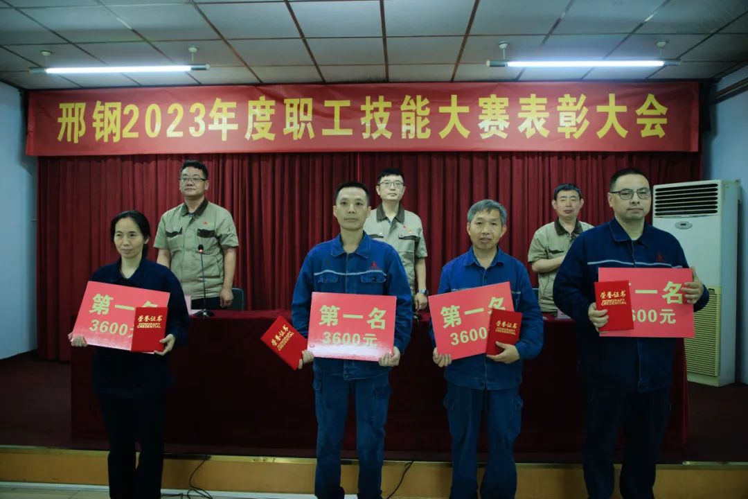 近日,邢臺鋼鐵有限責任公司在線材廠召開“2023年度職工技能比武大賽表彰會”,對取得優(yōu)異成績、表現(xiàn)突出的先進個人和集體進行表彰。公司總經(jīng)理彭世丹、副總經(jīng)理馬保良、韓清連為獲獎選手頒發(fā)榮譽證書并致賀。