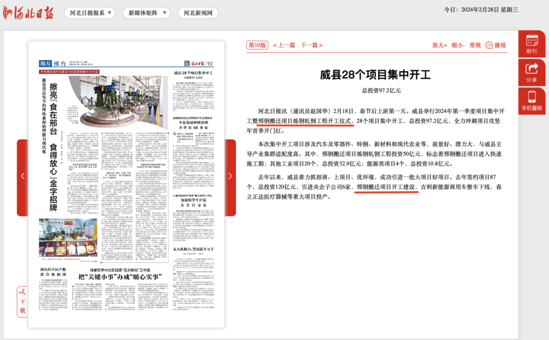 邢鋼搬遷項(xiàng)目既是威縣落實(shí)省市戰(zhàn)略部署,布局縣域新材料產(chǎn)業(yè)基地的重大決策,也是打造威縣300億元特鋼產(chǎn)業(yè)集群的龍頭項(xiàng)目、戰(zhàn)略支撐項(xiàng)目。