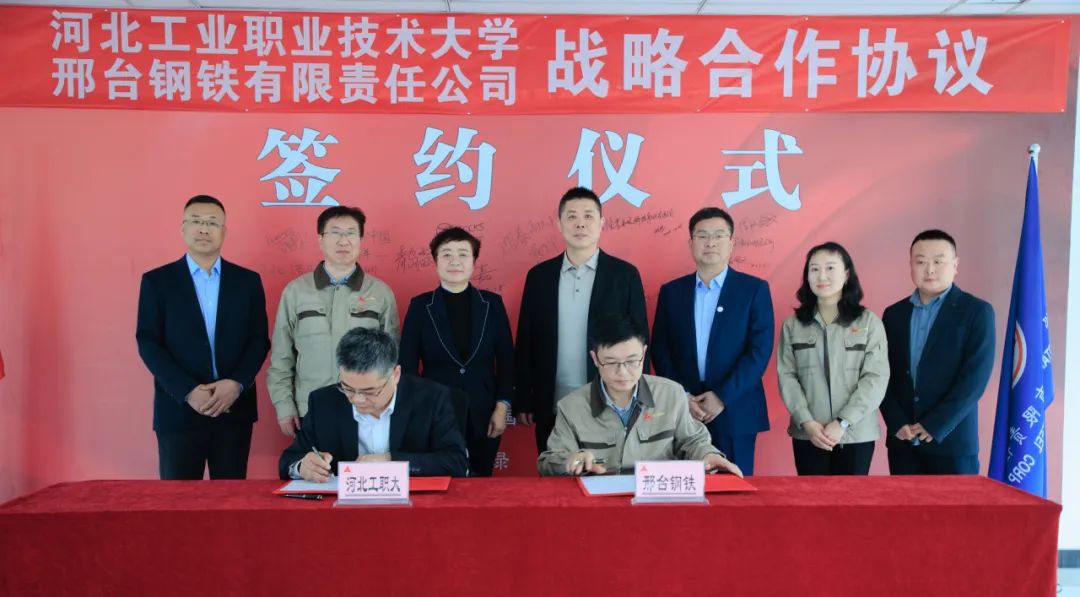 在與會(huì)人員的共同見(jiàn)證下,雙方代表簽訂了校企合作協(xié)議。還分別進(jìn)行了“河北工業(yè)職業(yè)技術(shù)大學(xué)大學(xué)生就業(yè)基地”、“河北工業(yè)職業(yè)技術(shù)大學(xué)實(shí)踐教學(xué)基地”、“邢臺(tái)鋼鐵有限責(zé)任公司人力資源培訓(xùn)基地”授牌互認(rèn)。