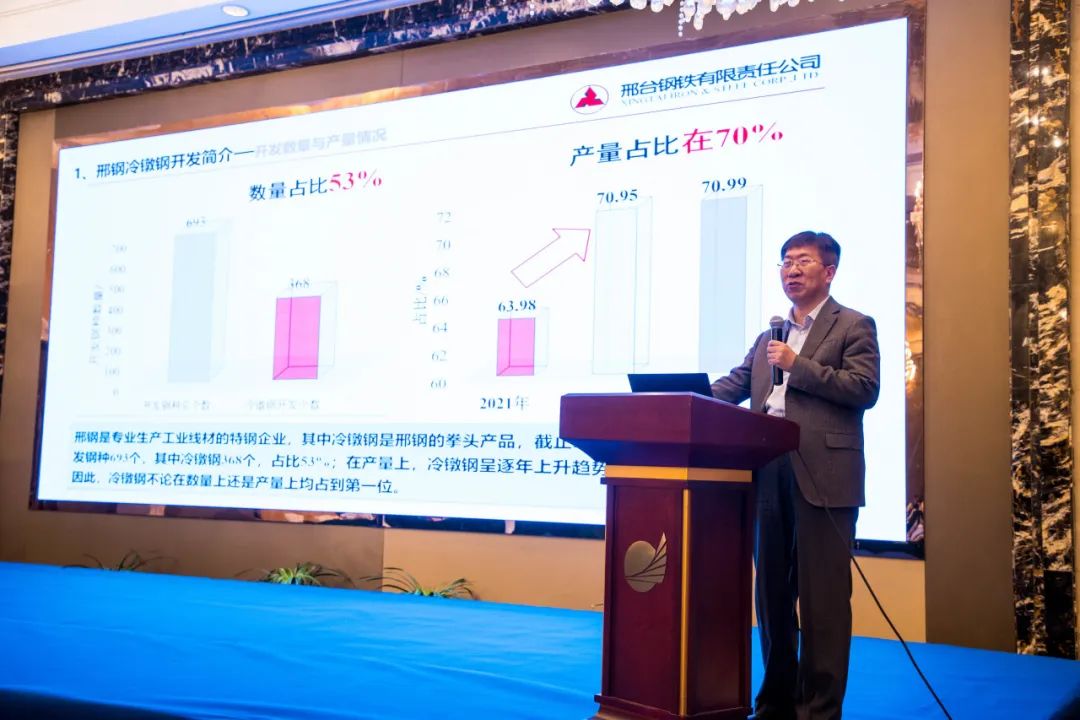 期間,邢鋼總經(jīng)理彭世丹作了《新規(guī)劃引領新未來,新邢鋼再鑄新輝煌》報告,邢鋼董事長助理、總工程師田新中作了《緊固件用鋼的開發(fā)和質(zhì)量控制技術》報告。浙江國檢檢測技術公司副總經(jīng)理王慧、晉億公司質(zhì)量技術部經(jīng)理張勇、中化創(chuàng)新研究院雙碳咨詢事業(yè)部總經(jīng)理劉通、上善院研發(fā)工程師楊現(xiàn)亮、南京工程學院教授趙秀明、上海納特汽車標準件公司研發(fā)總監(jiān)李軍正分別進行了行業(yè)技術報告分享。