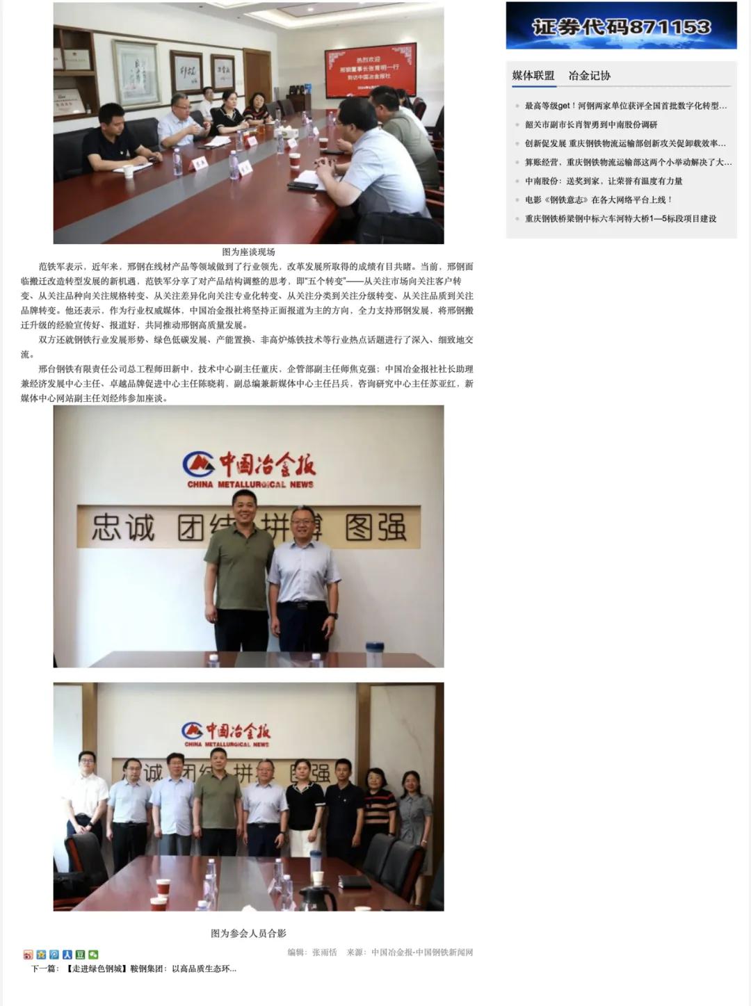 雙方還就鋼鐵行業(yè)發(fā)展形勢(shì)、綠色低碳發(fā)展、產(chǎn)能置換、非高爐煉鐵技術(shù)等行業(yè)熱點(diǎn)話題進(jìn)行了深入、細(xì)致地交流。
