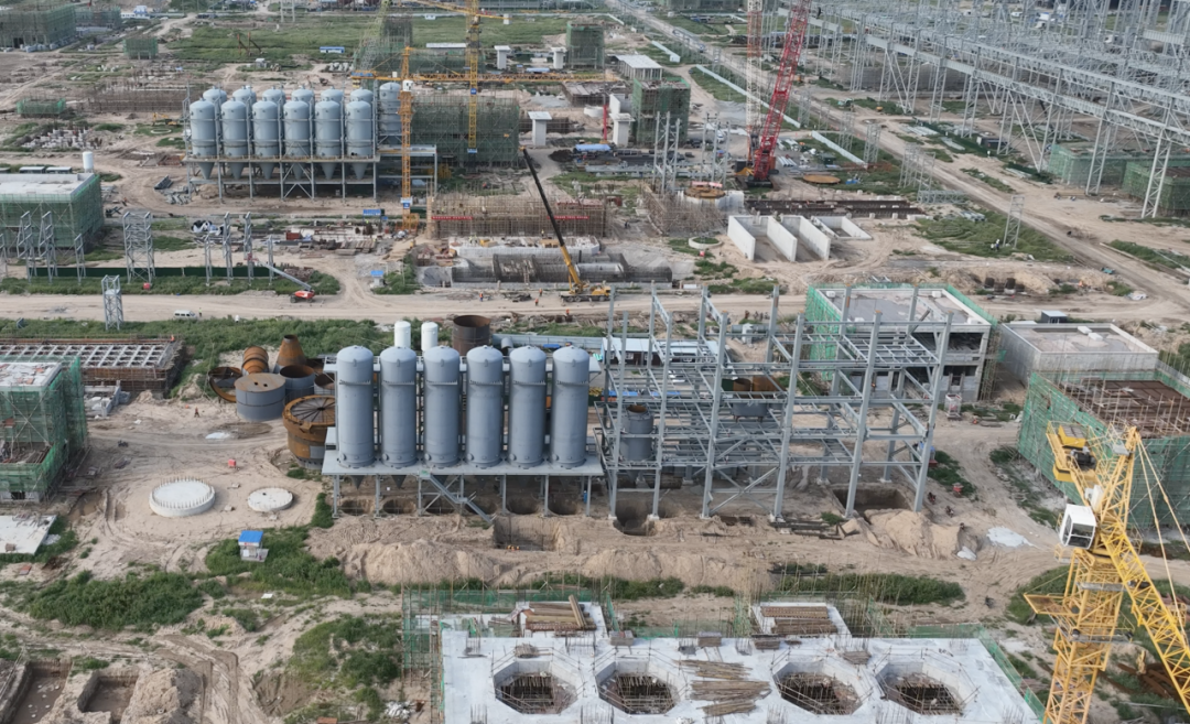 在大盤卷車間西側(cè)的不遠處,就是新邢鋼的心臟地帶——熔融還原爐!它可是新邢鋼的超級大明星,一路上我倆嘰嘰喳喳地探討過好多問題,全部都是關(guān)于它的建設(shè)情況。目前它還沒有落好,但我們有這樣的耐心,好事兒多磨嘛!看還原爐旁邊那些架起的鋼結(jié)構(gòu),也如同衛(wèi)士一般站在那里,我相信它們也和你一樣,熱切期待還原爐像啟明星一樣冉冉升起,照亮整個新邢鋼,引領(lǐng)行業(yè)未來!