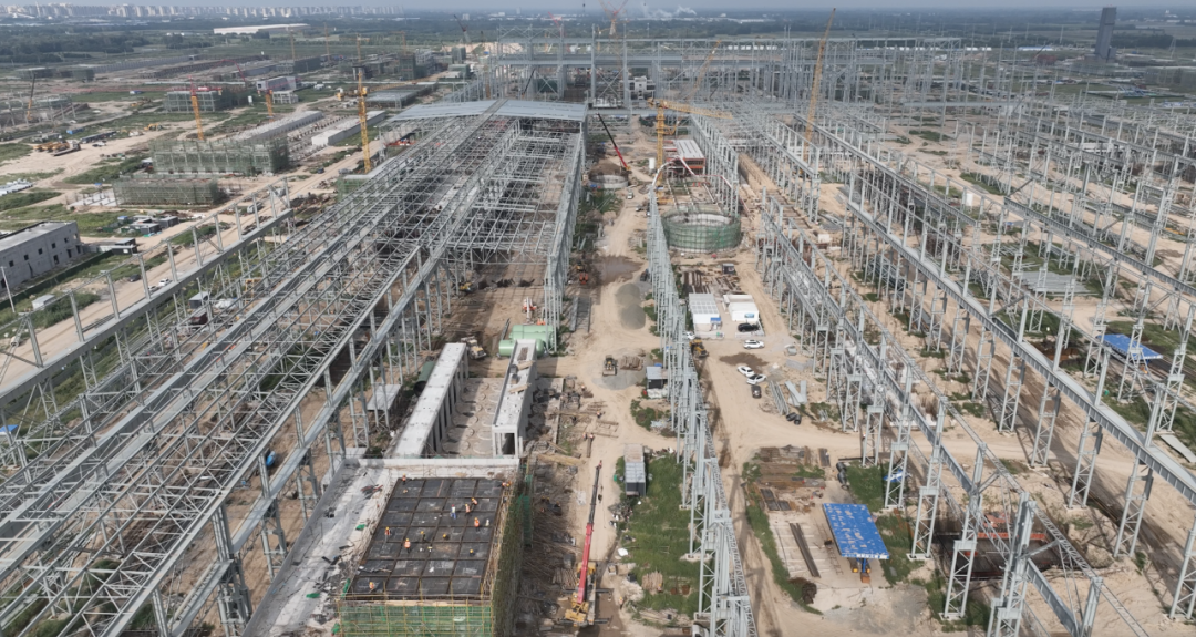工程車來(lái)回穿梭的車轍印、大型機(jī)械的轟鳴聲、矗立的鋼結(jié)構(gòu)和封頂?shù)慕ㄖ黧w、塔吊揮舞著長(zhǎng)臂加緊為建設(shè)者運(yùn)送物資……日前,位于威縣高新區(qū)的邢臺(tái)鋼鐵有限責(zé)任公司搬遷升級(jí)項(xiàng)目(以下簡(jiǎn)稱“邢鋼搬遷升級(jí)項(xiàng)目”)正在有序緊張施工中,2000余名工人分布在各個(gè)作業(yè)面,項(xiàng)目已全面進(jìn)入地上鋼結(jié)構(gòu)及主線設(shè)備基礎(chǔ)施工階段,項(xiàng)目一期預(yù)計(jì)今年年底建成投產(chǎn)。