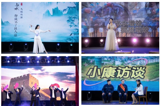 聯(lián)歡會在煉鐵廠震撼人心的《旗鼓飛揚》的鼓聲中拉開帷幕,煉鋼廠、線材廠、新翔公司等二級單位、子公司錄制的《邢鋼一線員工賀新春》視頻為聯(lián)歡會烘托出濃厚的節(jié)日氣氛。碳資產(chǎn)管理部蘆麗華、線材廠張嬌的一首《紅彤彤的春天》讓觀眾如沐春風(fēng),銷售公司田芳、張可等的動感現(xiàn)代舞《奔跑吧,兄弟!》又讓觀眾切身感受到市場營銷人員的拼搏、奉獻。焦化廠申學(xué)軍、閆俊萍等的《難忘的焦?fàn)t情懷》,以情境小品的形式,再現(xiàn)2#焦?fàn)t安全停爐的場景,重溫焦化人站好最后一班崗的敬業(yè)情懷;線材廠魏東的《步步高》,唱出了邢鋼人的激情與豪情。技術(shù)中心蔡永賓等的詩朗誦《攜手邢鋼,追夢邢鋼》,以新一代邢鋼人的視角,張揚青春,澎湃激情;煉鋼廠張康健、甄建軍的《想把我唱給你聽》、資金部趙嘉薏的舞蹈《青花瓷》、能源動力部董巖的《匆匆歲月細細地過》、新翔公司郭文杰、景雙輝等的歌伴舞《雪龍吟》展現(xiàn)了鋼鐵人的別樣情懷。晚會中的兩個小品——煉鐵廠的《考察》、煉鋼廠的《小康訪談》,在輕松詼諧的氣氛中,展示了廣大員工對新邢鋼美好未來的信心。邢鋼搬遷項目指揮部與綜合辦公室、線材廠帶來的詩朗誦《希冀,奮進,筑夢新邢鋼》,回顧了邢鋼搬遷項目的建設(shè)歷程,激勵全體員工以更加昂揚的斗志、更加飽滿的激情,投身到各自的崗位上,讓新邢鋼的旗幟,永遠在鋼鐵行業(yè)的巔峰飄揚!