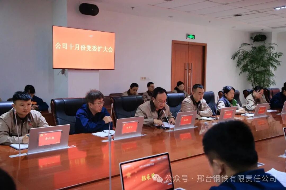 10月30日,公司黨委在公司辦公樓207會(huì)議室召開(kāi)10月份黨委擴(kuò)大會(huì),公司領(lǐng)導(dǎo)田新中、魏利剛、李紅超等高層及全體中層管理人員、主任級(jí)、副主任專業(yè)職務(wù)人員參加了會(huì)議。駐威縣新廠人員通過(guò)視頻會(huì)議系統(tǒng)參會(huì)。